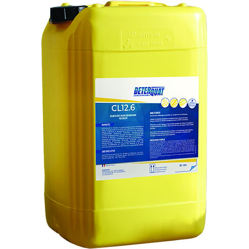 Liquide chloré concentré à 12.6% de chlore actif. Désinfection des surfaces, objets, matériaux et...