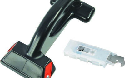 Modèle professionnel, pour revêtements de sols, réserve de lames à l’intérieur du manche, bouton...