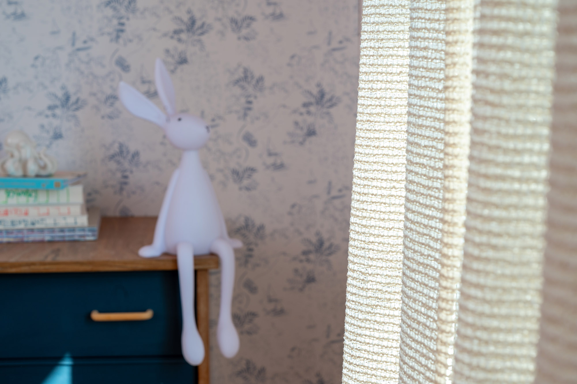 Les matières brutes côtoient ici les matières douces. Prendre le large, oui mais pas sans filet ! On admire ici ce voilage crocheté d’une infinie délicatesse. le tombé est douillet et laisse passer juste ce qu’il faut de lumière pour préparer ses plans.