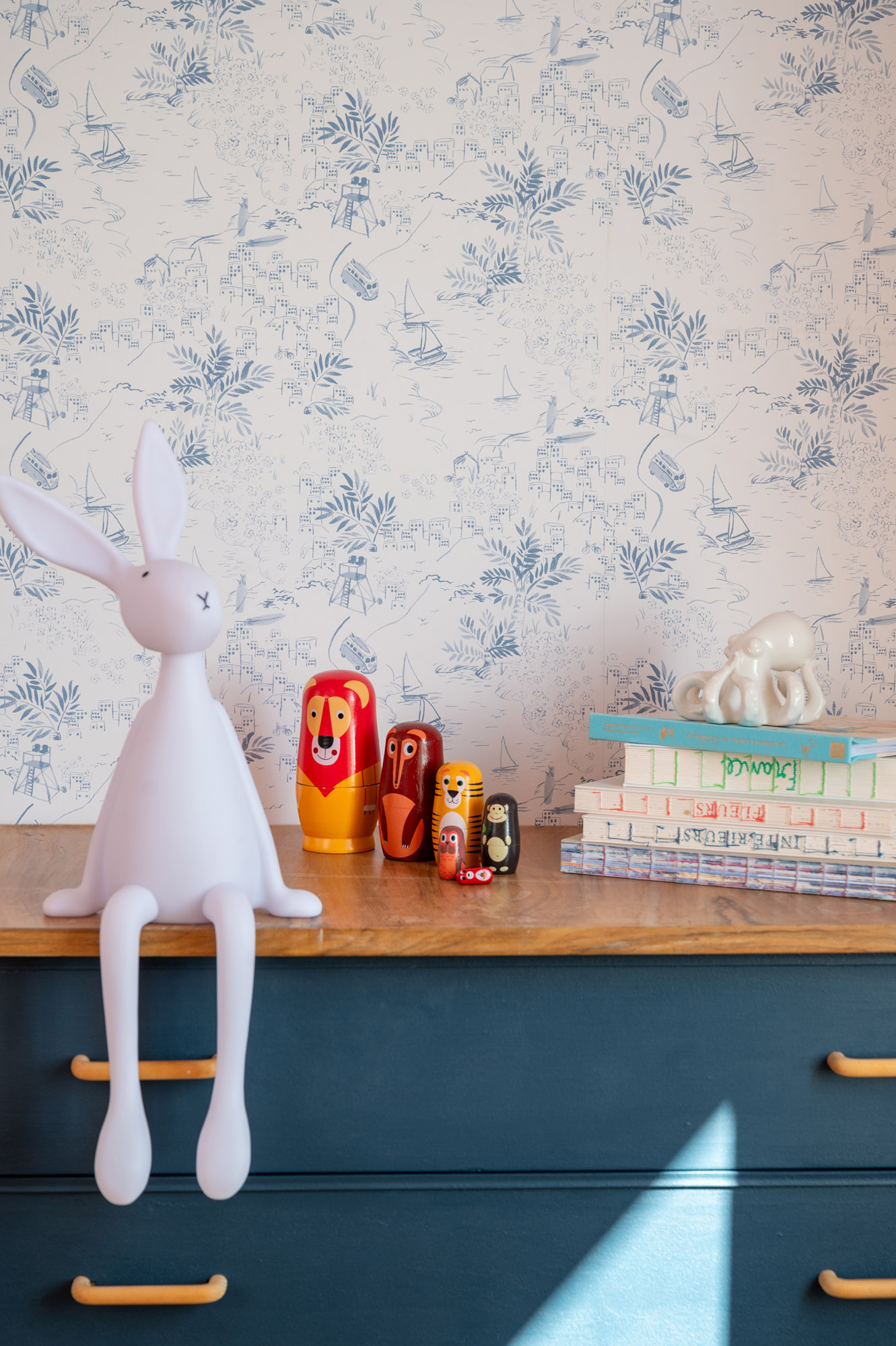 Très clair : on part à l’aventure et le papier peint Les Voyages de Léon l’illustre à la lettre : paysages variés, voiles et vans sont de la partie.