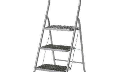 Escabeau en acier avec coating argenté. Garde corps de sécurité haut (60 cm). Système de...