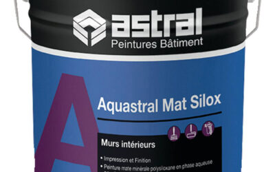 Peinture à base de résine synthétique et polysiloxane en phase aqueuse pour murs et plafonds.