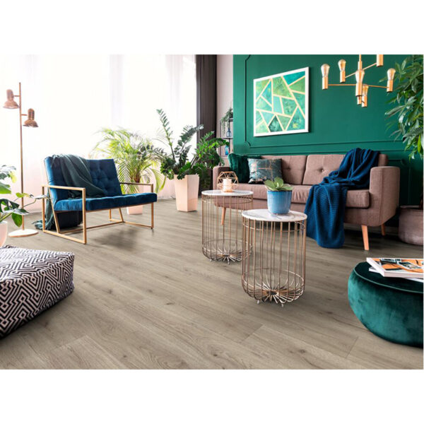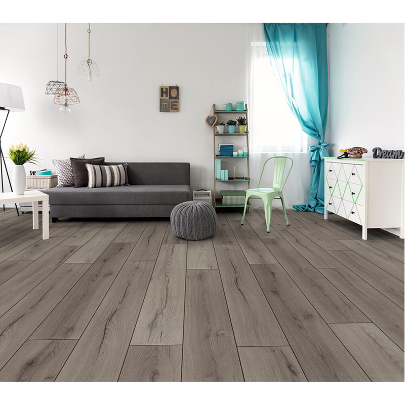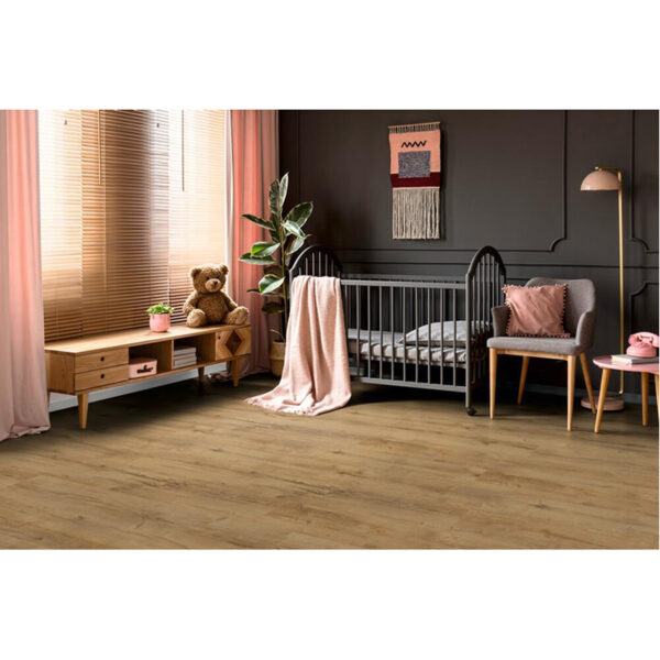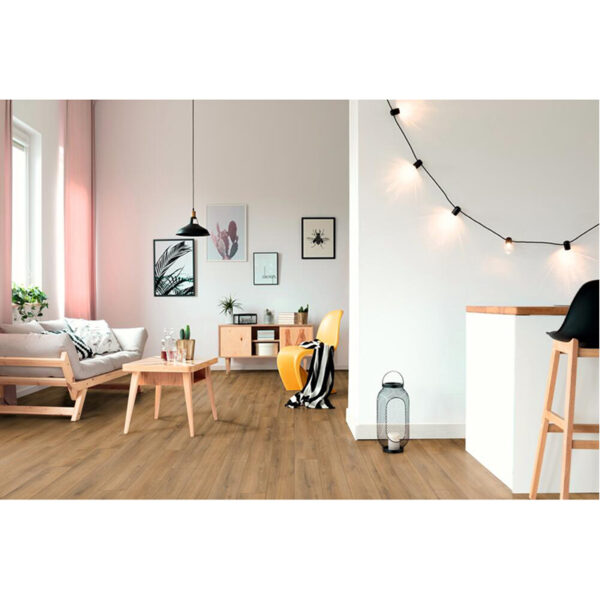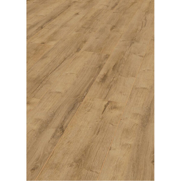 Le sol stratifié gamme Advanced est réputé pour sa robustesse grâce à sa résistance à l’abrasion élevée qui lui permet de supporter des passages fréquents. Il est également résistant aux glissements. Plinthes assorties.