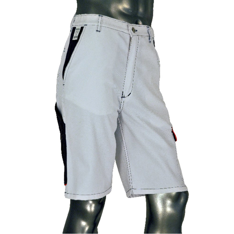 65 % coton renforcé de polyester. Taille avec élastique. 7 poches dont 1 poche mètre. Du 38 au 48.
