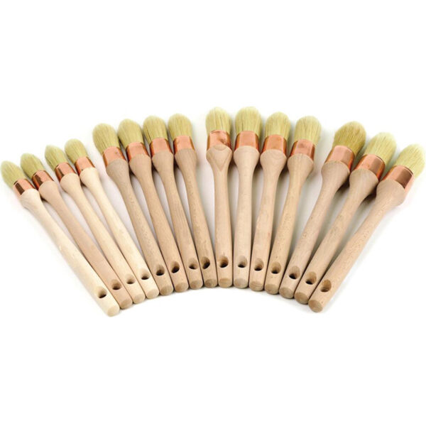Ensemble de 15 brosses chantier. 4 X N°2 + 4 X N°4 + 4 X N°6 + 3 X N°8. Mélange de soie et synthétique monté sur fleur. Virole acier cuivré. Manche bois poncé. Spécial gros chantier.