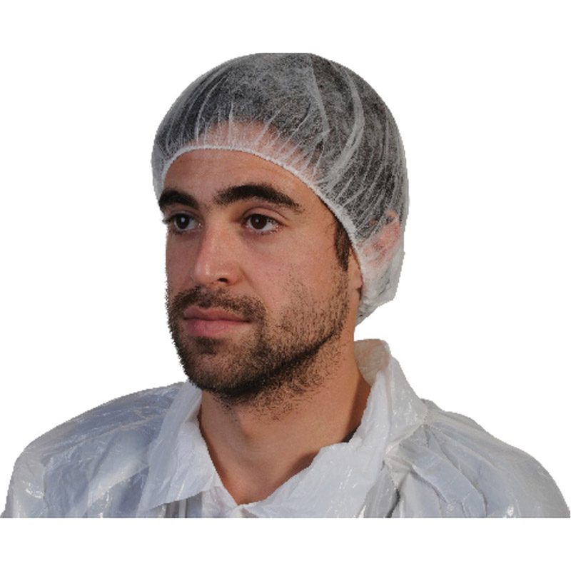 Polypropylène non tissé. Elastique cousu sur le bord de la charlotte. Diamètre 48 cm. Epaisseur : 10 gr / m². 10 sachets de 100.