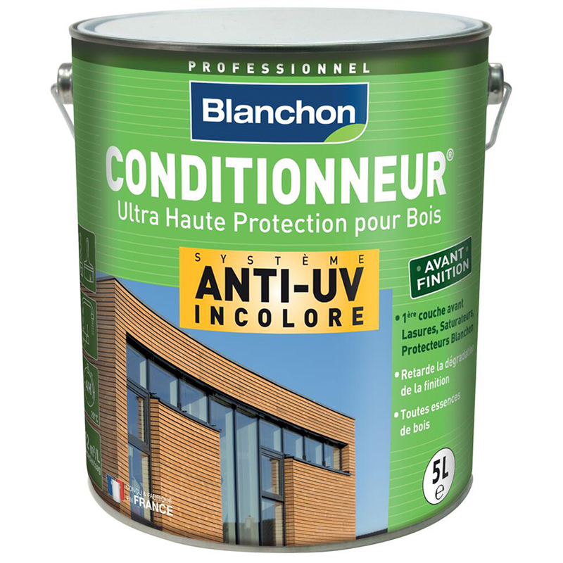 Barrière ultra haute protection anti-UV incolore avant finition des ouvrages extérieures en bois.