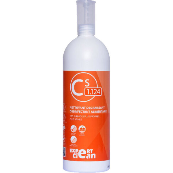 CS 1.124 nettoie, dégraisse et désinfecte efficacement tous les types de sols et de surfaces alimentaires. Il est parfaitement adapté pour les sols, plans de travail, plaques de cuisson, murs, hottes aspirantes, mobiliers EN 1276, EN 1275, EN 13697.