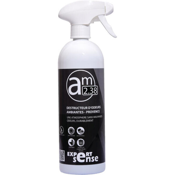 AM 2.38 neutralise immédiatement et durablement les mauvaises odeurs. Il diffuse un parfum fleuri et extrêmement rémanent de propreté et de fraîcheur. Contre toutes les odeurs ambiantes : sanitaires, parties communes, vestiaires etc …
