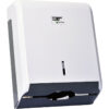 Fermeture sécurisée avec clé. Changement facile des consommables. Matériau ABS. 400 à 600 essuie mains. Visualisation du niveau de papier. 4 points de fixation.