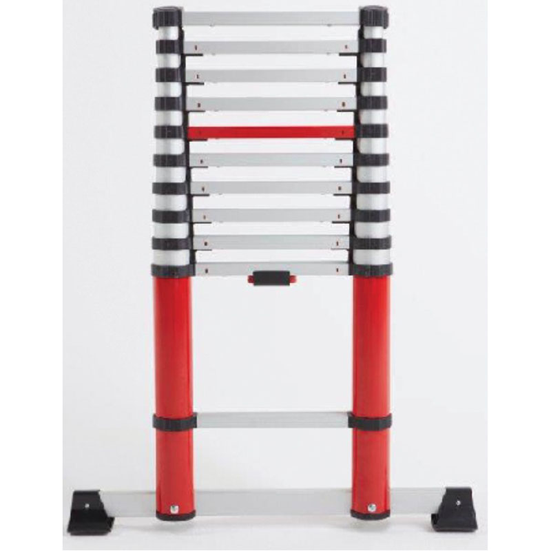 Echelle télescopique 11 marches très facile à utiliser. Adaptée à un grand nombre de travaux différents. Surface d’appui confortable grâce à une profondeur d’échelon de 40 mm. Commande unique : l’échelle se déverrouille et se développe automatiquement lorsque vous appuyez sur le bouton. La base évasée et les pieds antidérapants vous assurent une position sûre et stable. Plus de sécurité pour les doigts.