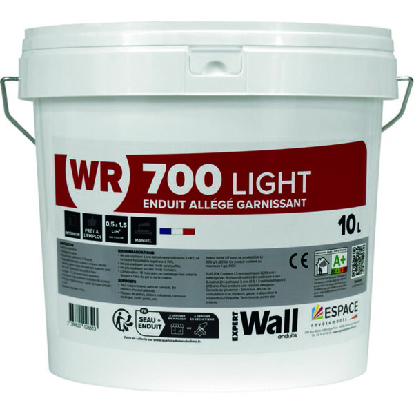 Enduit allégé manuel garnissant. Idéal en rénovation. Rebouchage petits trous et fissures. En intérieur, murs et plafonds. Plaques de plâtres, bétons, supports imprimés, ancienne peinture adhérente… Epaisseur maximale par couche : 7mm. Consommation : 0,5 a` 1,5 litre par m2 et par couche selon support.