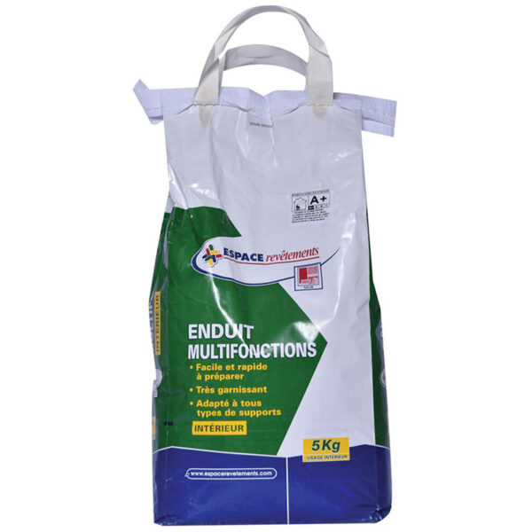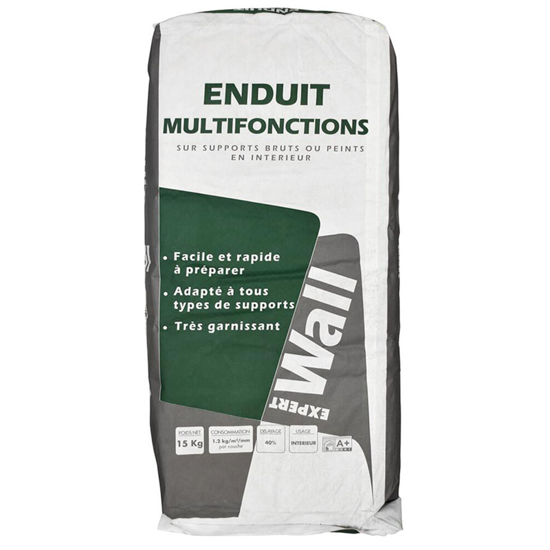 En poudre. Pour dégrossir. Destination : intérieur. Temps d’utilisation : 8 h à 20°C. Temps d’attente : après séchage complet. Très garnissant. Consommation : 1,3 kg pour 1 l.
