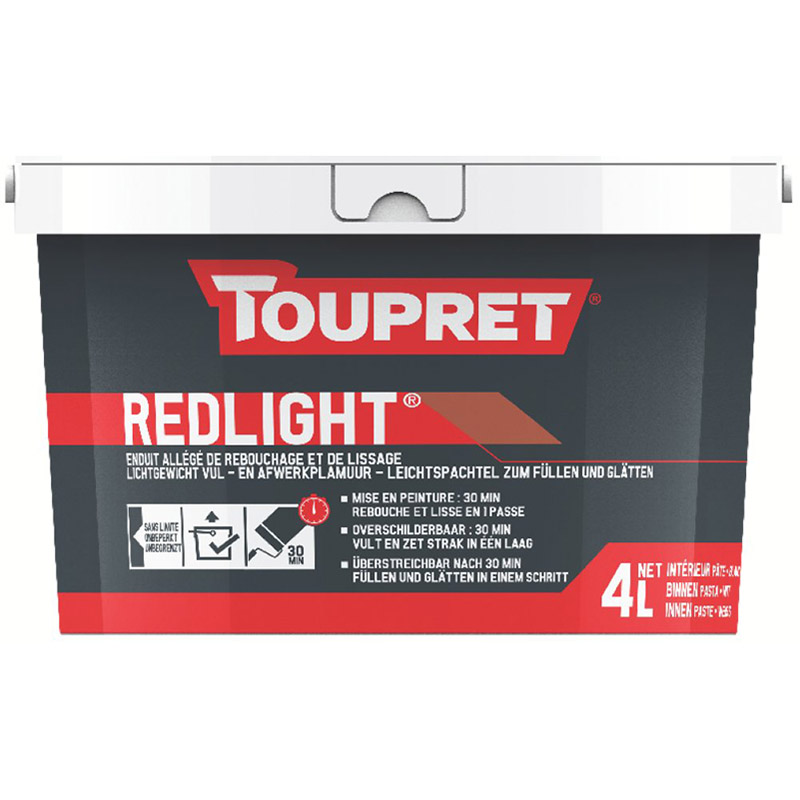 Enduit de rebouchage allégé. Spécial révisions express. Mise en peinture rapide : 30 min / mm d’épaisseur. Sans retrait. Sans ponçage. Couleur : blanc. Consommation 1l/1l.
