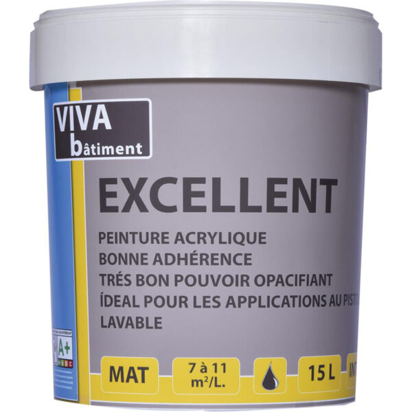 Peinture acrylique de finition mate. Bonne adhérence sur les plaques de plâtre, plâtre et surfaces de faible adhérence.