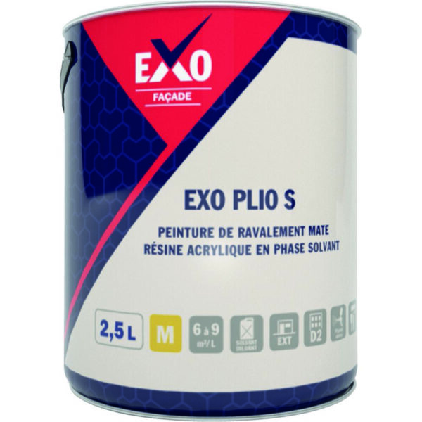 Peinture de ravalement mate à base de résine acrylique en phase solvant.