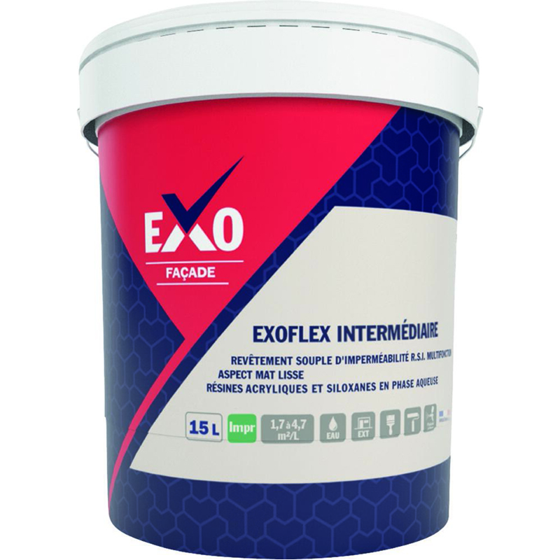 Couche intermédiaire des systèmes d’imperméabilité Exoflex à base de résine acrylique et siloxane en phase aqueuse.