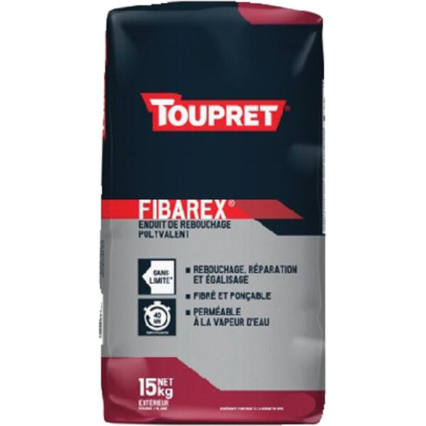 Enduit de rebouchage et réparation fibré en poudre, pour application manuelle. S’applique sur supports neufs ou rénovés, bruts ou peints et est recouvrable par tous types d’enduits extérieurs et peintures : organiques et minérales en film mince, RPE, RSE et revêtements d’imperméabilité. Reboucher, réparer et égaliser avec une finition lisse. Consommation : 1,1 kg/m²/mm.