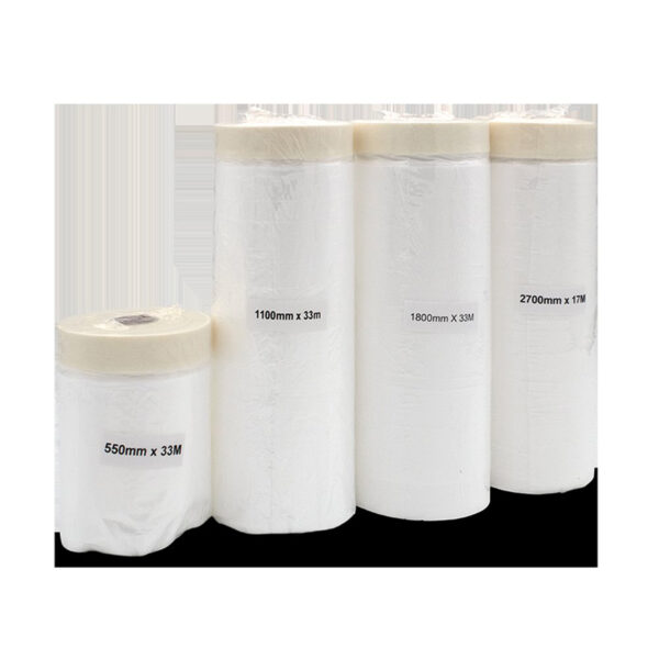 Film de masquage pré-collé à feuilles HDPE traitées par effet de couronne, capable de couvrir rapidement de grandes zones.