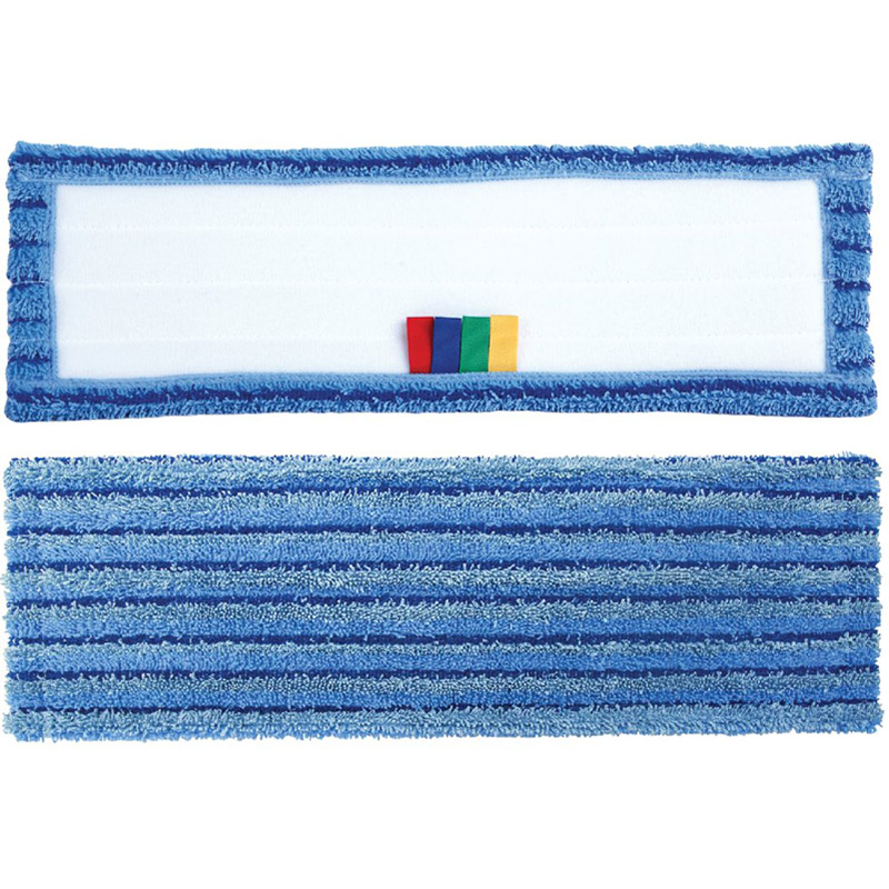Grattante. Tri-matière : bouclettes souples 100 % microfibre (accrocher la saleté) + bouclettes souples 100 % polyester (améliorer l’absorption) +bouclettes grattantes 100 % polypropylène (enforcer l’action mécanique sur les surfaces traitées et donner du confort de glisse à l’utilisateur). Pour le lavage et la désinfection. Dimensions : 450 x 130 mm. Poids 90 gr à sec.