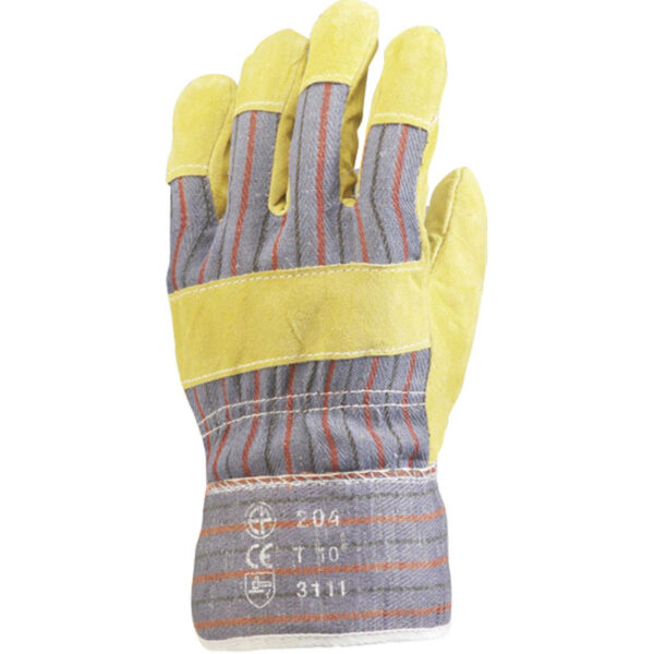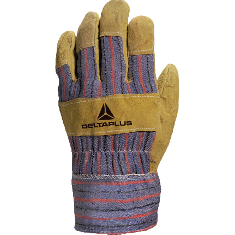 Gant type docker cuir croûte de bovin. Dos toile avec renfort cuir. Manchette en toile renforcée.