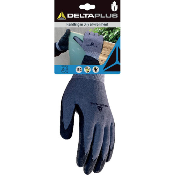Polyamide/Spandex. Enduction nitrile/polyuréthane sur paume et bout des doigts : résistant aux huiles, travail souple, confort, performances mécaniques. Picots nitrile sur paume : meilleure prise d’objet, antidérapant. Jauge 15 : dextérité et finesse de travail. EN ISO 21420:2020 5 + EN388:2016 3-1-2-1-X.