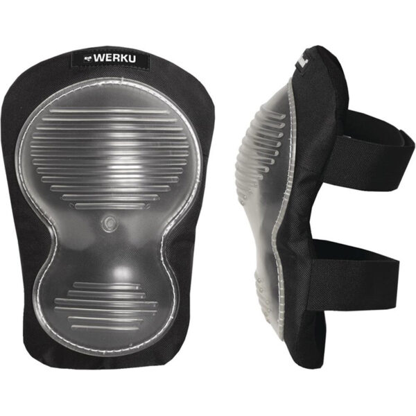 Tissu noir, bandes élastiques en néoprène. Protection avant transparente. Composition 10 % gel, 35 % PVC, 20 % EVA. Normes EN ISO 13688:2013 + EN14404:2004+A1:2010. 395 gr. Cat I.