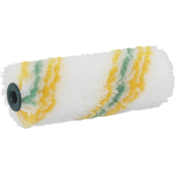 Polyamide tissé 12 mm. Fil continu. Système déperlant. Sans fluocarbure. Peintures mates et satinées, phase aqueuse et solvant, cationiques. Surfaces régulières. Murs, plafonds, toiles de verre, gouttelettes. Haut pouvoir couvrant et absorbant. Anti-projection. Pas de perte de fibres. Nettoyage facile. Aspect poché serré.