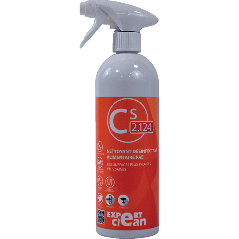 CS 2.124 nettoie et désinfecte rapidement et efficacement toutes les surfaces lavables. Idéal pour le nettoyage et la désinfection des surfaces alimentaires, mais tout aussi adapté pour les parties communes, tertiaires, sanitaires,… Sans parfum, il est parfaitement adapté aux industries agro-alimentaire.