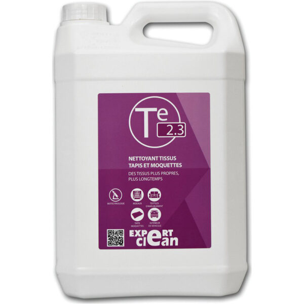 TE 2.3 nettoie et détache efficacement tous les types de tissus. Il convient pour les tapis, moquettes, textiles d’ameublement en intérieur ou dans les véhicules. TE 2.3 diffuse un parfum de propreté agréable et frais.
