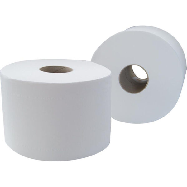200m. Pure ouate de cellulose. Lisse. 2 plis. Laize 10,7cm. 2×15,5 gr/m². Colis de 12 rouleaux.