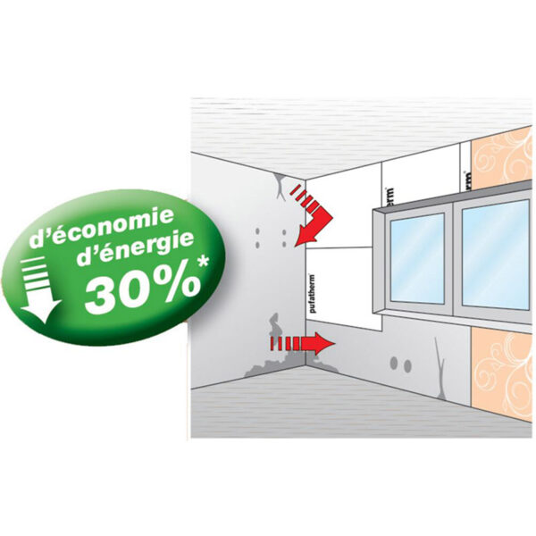 Eliminer et éviter les dégâts causés par l’humidité. Pour des surfaces lisses. Pour plus de chaleur. Pour des murs secs et sans moissures. Epaisseur 7 mm avec primaire d’accrochage. Dimensions de la plaque : 8 x 50 x 100 cm. Economie d’énergie 30 %. Colle utilisée : Colle polystyrène DECOTRIC.