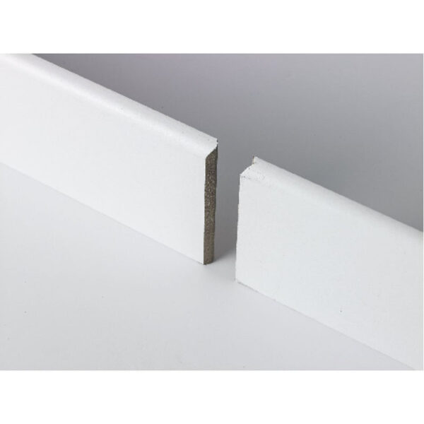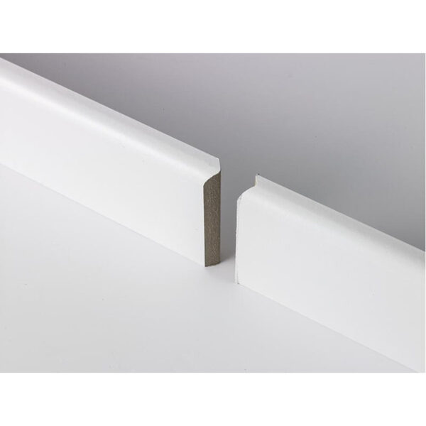 Plinthe MDF revêtue d’un papier pouvant être peint. La connexion en V de nos plinthes permet un emboîtement parfait. Dégraissage au pied. Rainure de passage de câble (à partir de 14mm).
