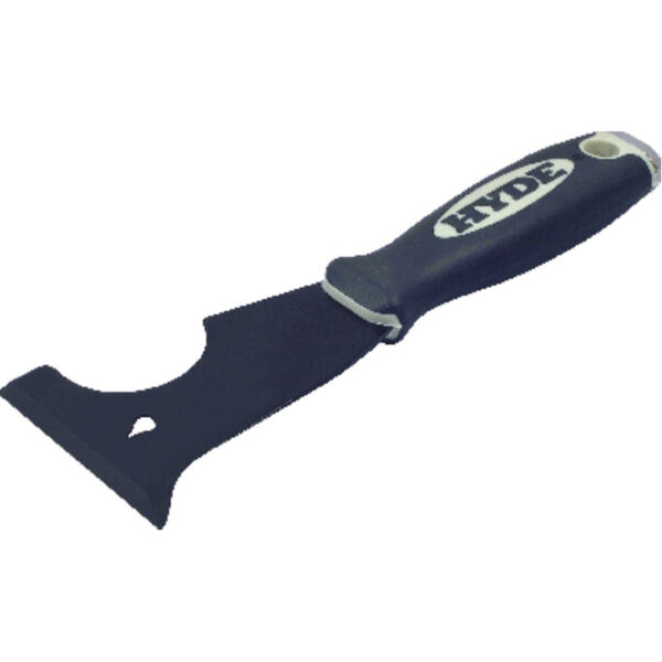 Lame acier traitée anti-corrosion. Usage : enfoncer de petites pointes, étaler l’enduit, enlever le mastic, trancher, élargir les fissures, gratter, ouvrir les bidons, arracher les clous et nettoyer les rouleaux à peindre.