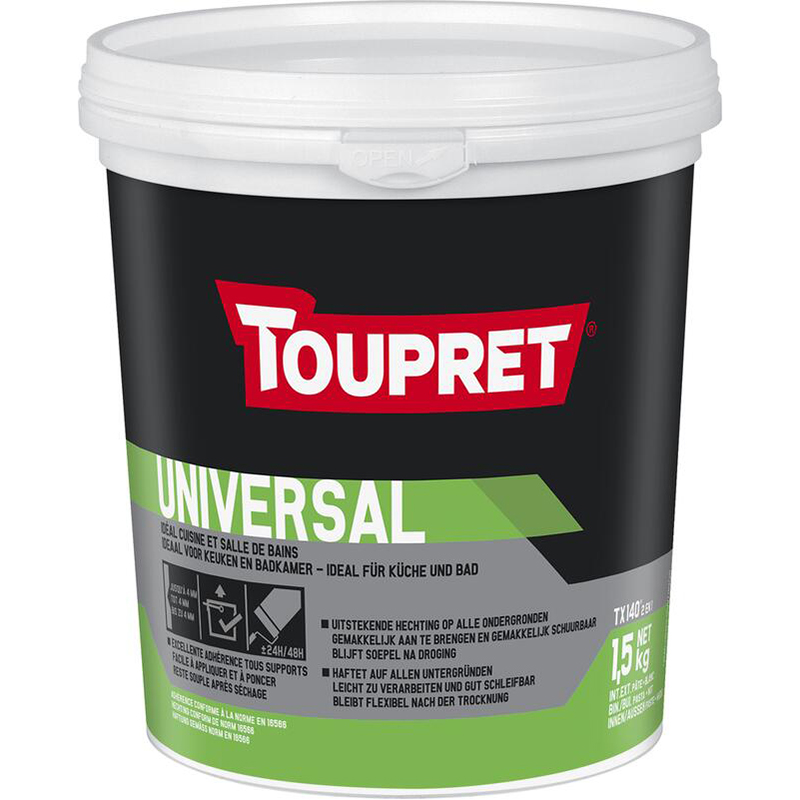 Enduit de rénovation tous usages spécial supports souples et carrelés. Idéal cuisine et salle de bains. Excellente adhérence tous supports. 2 en 1 : garnissant – lissant. Facile à appliquer et à poncer. Reste souple après séchage. Consommation 1600 g/m².