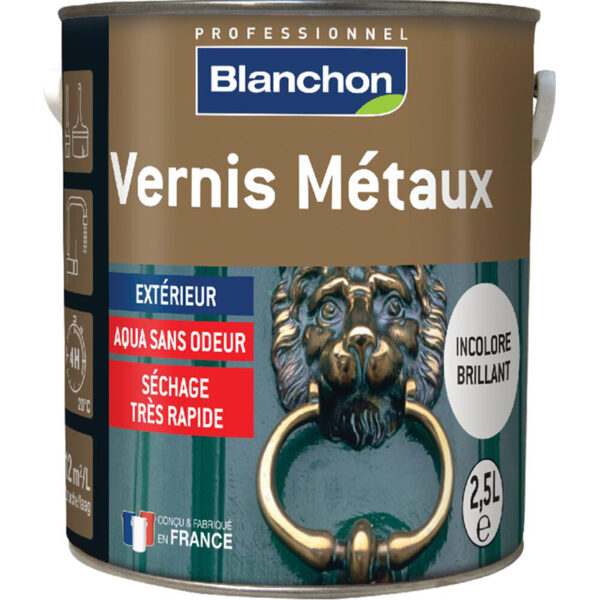 Vernis de protection incolore pour la préservation des métaux bruts en extérieur et en intérieur : fer, cuivre, galvanisé, zinc, aluminium, inox, laiton, bronze.