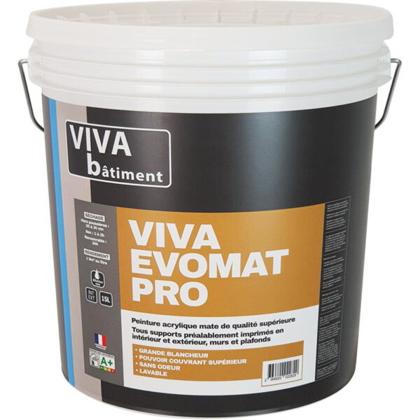 Peinture acrylique mate de qualité supérieure . Tous supports préalablement imprimés des murs et plafonds en intérieur/extérieur.